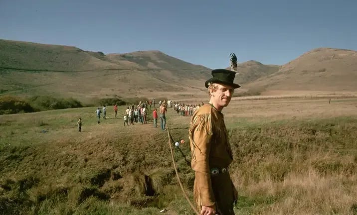 不出所料,布兰德在计算机领域也是最早的参与者之一。1968年,他以摄影师身份参与了如今被称为”所有演示之母”(the mother of all demos)的历史性事件——由斯坦福研究院举办的一场划时代展示,呈现了我们今天所熟知的个人计算机基础元素:窗口界面、超文本链接、视频会议,甚至还有当时闻所未闻的”鼠标”。1972年,他在《滚石》杂志的一篇文章(Spacewar! by Stewart Brand)中宣称,个人计算机是”好消息,也许是自迷幻药以来最好的消息”。”其实要好得多,”他如今说道。”因为很快就变得显而易见的是,迷幻药的效果某种程度上到了瓶颈”,而计算机则实现了”指数级的腾飞”:摩尔定律(每两年处理能力翻倍)、互联网,如今又有了人工智能——我们仍在这条轨道上前行。