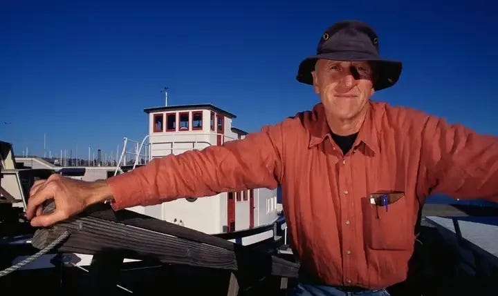 可以说,布兰德的人生同样宏大而绵长。他如今已87岁,正处于一段丰富而充满冒险的人生的最后篇章,这段人生与他所处时代中一些最具影响力的事件和人物都有过交集。他曾是作家、编辑、出版人、军人、摄影记者、迷幻药倡导者、活动组织者、未来规划顾问,甚至还担任过政府顾问(1970年代末曾任加利福尼亚州州长杰里·布朗的顾问)。”曾经有人问我:’你是做什么的?’我说:‘我发现东西,我创立东西。’“(I find things and I found things)布兰德说道,他所说的”创立”,意指他是一位创始人。他正从加利福尼亚州彼塔卢马的一间他喜欢工作的图书馆里接受采访,那里距他在索萨利托的船屋不远。”我一直在寻找值得推荐的好东西,以及优秀的人。”