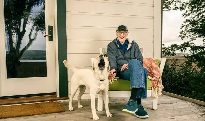 在身体维护方面,布兰德始终是一个健康、活跃、热爱户外的人——他曾是一名热情的帆船手,60多岁时还背着装满石头的背包徒步登山,75岁时开始参加CrossFit训练——”这造就了相当强健的体魄”。然而如今,他患上了一种呼吸系统疾病,他说,这种病”是进行性的、无法治愈的,且终将致命”。他目前病情稳定,仍坚持锻炼,但也需要辅助供氧。”能活到90多岁,我会感到非常惊讶,”他说,语气中似乎毫无遗憾:”想想这份幸运,能活到87岁——这简直太美妙了!”